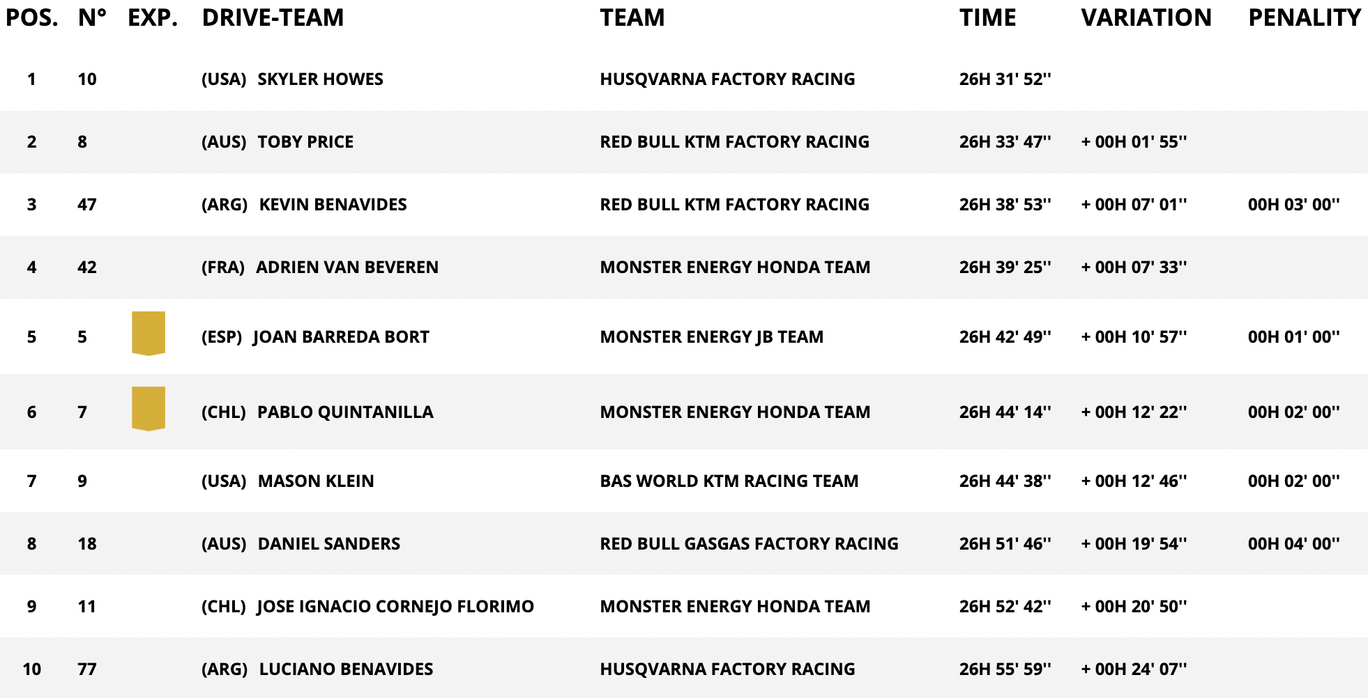 Dakar 2023 – Top 10 classifica assoluta Moto dopo la Stage 7