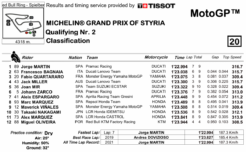 Ecco le classifiche di Q1 e Q2 del GP di Stiria: