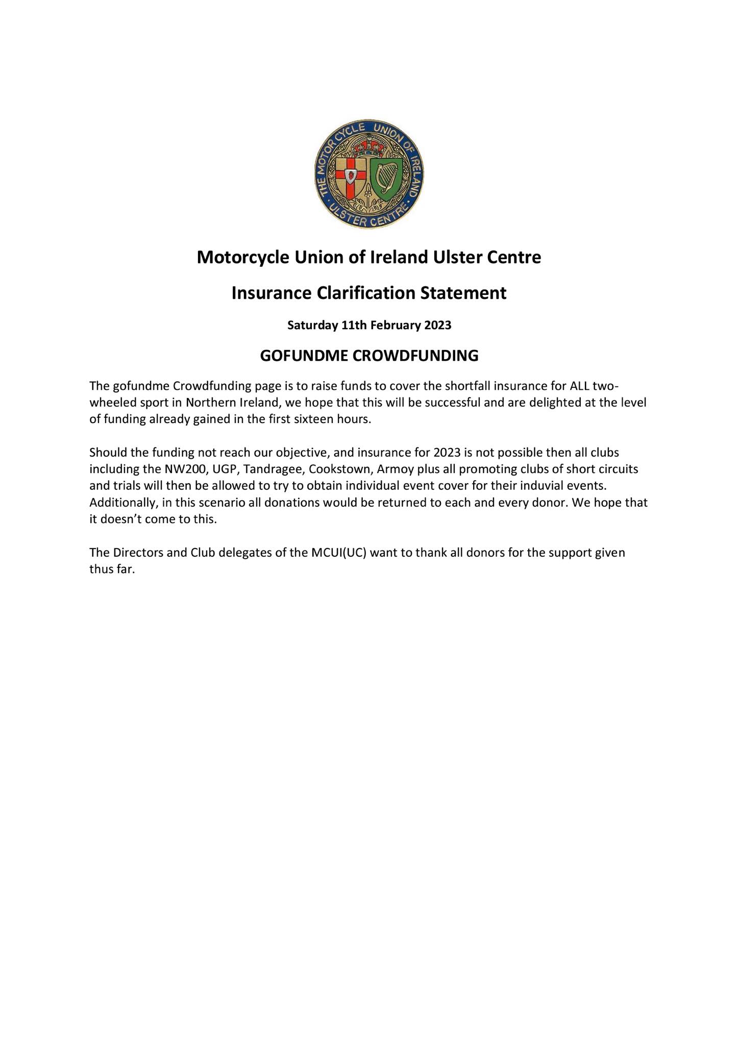 Dopo lo scioccante comunicato dei giorni scorsi, nel quale a causa dei costi triplicati per le assicurazioni si annullavano tutte le gare nordirlandesi del 2023, la Motorcycles Union of Ireland tenta l’ultima mossa per correre la stagione completa, appellandosi ai propri fan per cercare di salvare le competizioni. È stato aperto il gofundme ufficiale.