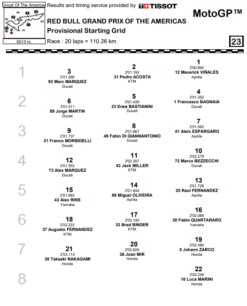 Secondo tempo per un sempre entusiasmante Pedro Acosta, che conquista la prima fila alla terza gara in MotoGP, seppur a oltre tre decimi da Vinales. A completare la prima fila nella Sprint di questa sera e nella gara di domani sarà Marc Marquez, che ha chiuso la Q2 col terzo tempo a quattro decimi da Vinales.
