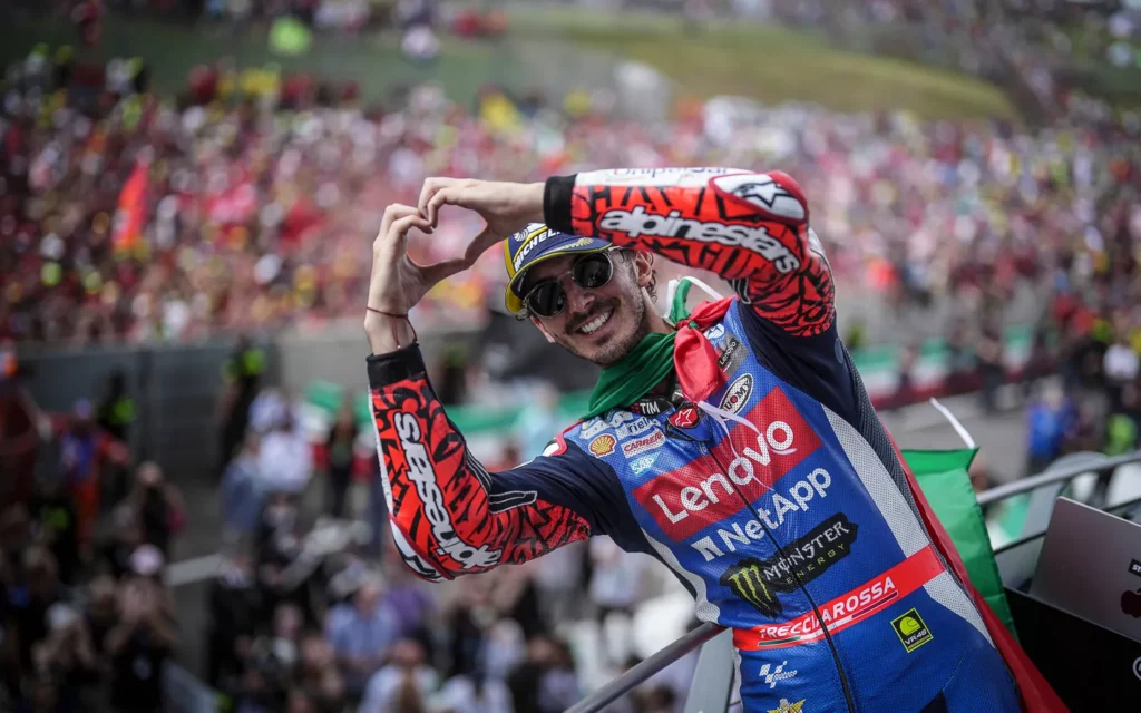 Festeggia Bagnaia al termine del GP d’Italia, al Mugello Pecco è riuscito a trionfare grazie ad una super partenza, studiata prima del via, al calore del pubblico e per mezzo di una strategia poco ortodossa in cui alternava giri veloci a giri di cool down. Il #1 ha spiegato che questa strategia è stata necessaria per gestire l’usura delle anteriori medie mal accordate con le posteriori soffici.