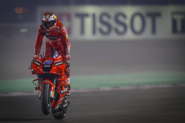 Il secondo turno di libere del Gran Premio di Doha sembra un remake di una settimana fa. Il più veloce è stato Jack Miller, davanti a tutti in 1’53”145, con ben tre decimi di vantaggio sul compagno Bagnaia che completa una attesa doppietta Ducati Lenovo. Si è trattato di un turno con temperature favorevoli, 26°C nell’aria e 30°C sull’asfalto, che hanno permesso a piloti, motori e gomme di esprimersi al meglio e, come la settimana scorsa, in ottica gara i piloti hanno lavorato con gomme Soft. Johann Zarco è terzo (+0”392) e sono ben quattro le Ducati in Top5, grazie al quinto tempo del rookie Martin. Ci ha pensato Fabio Quartararo a rompere l’egemonia desmodromica, col quarto tempo a quattro decimi e mezzo dalla vetta.