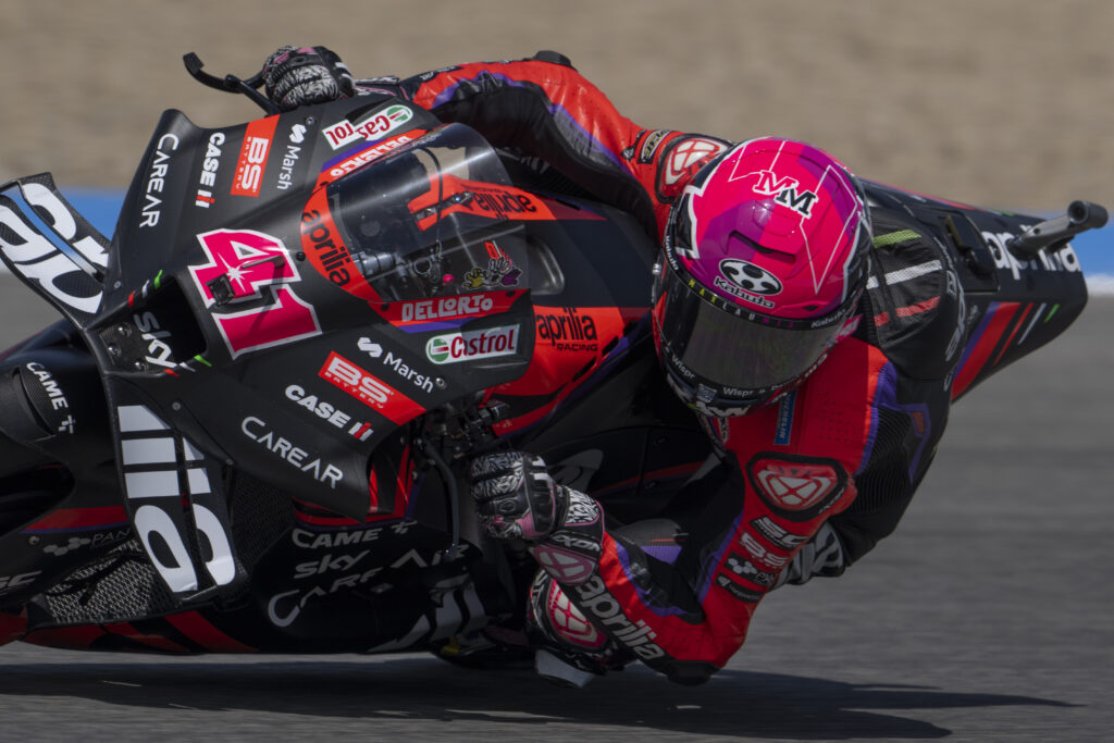Lo spagnolo dell’Aprilia detta legge a Silverstone, rifilando quasi sette decimi a tutti i rivali in MotoGP al termine del turno pomeridiano di prove della MotoGP. Bene anche Vinales, mentre Quartararo e Marquez mancano l’accesso diretto alla Q2. Tante novità tecniche nel turno mattutino.