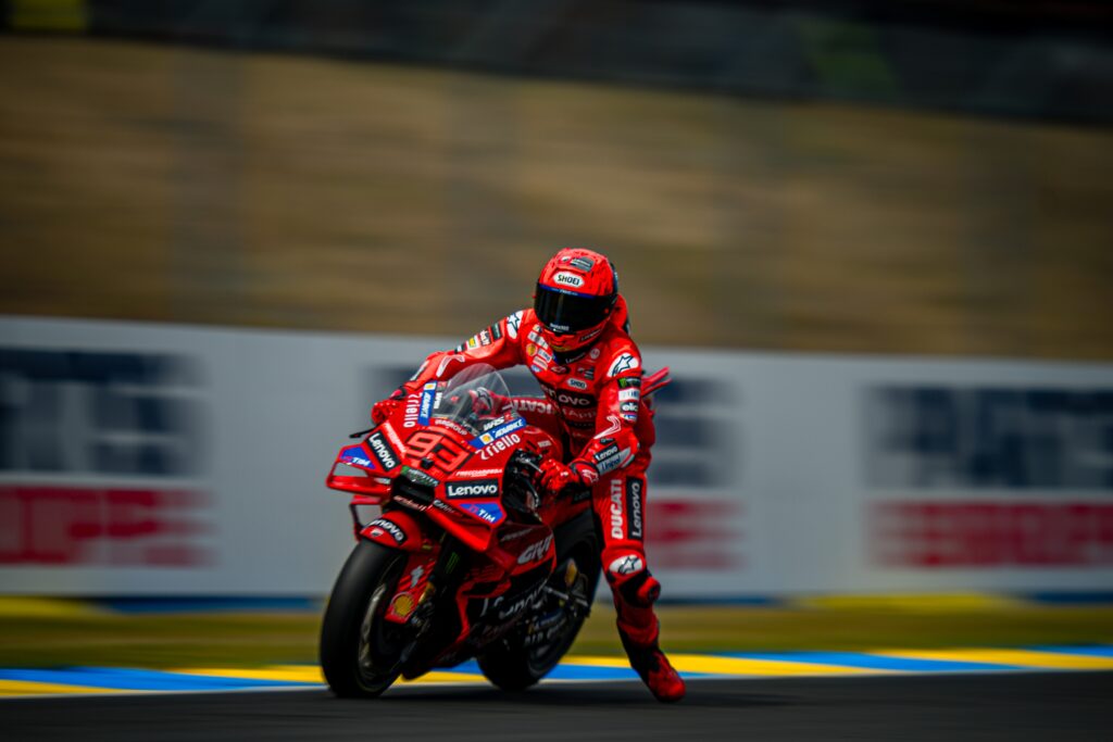 Ancora una volta Marc Marquez appone il suo sigillo nella Sprint del sabato: sul circuito di Le Mans, l’otto volte campione del mondo riesce a sopravanzare Fabio Quartararo per poi involarsi nel sesto successo stagionale per quanto riguarda le Sprint, riscattando lo zero dopo la caduta a Jerez. Marquez ha atteso e sfruttato l’eccessivo consumo gomme della M1 dell’avversario, ritenendosi soddisfatto del comportamento del nuovo telaio a disposizione, non dissimile dalla specifica già utilizzata ma con un buon potenziale per lo sviluppo durante la stagione
