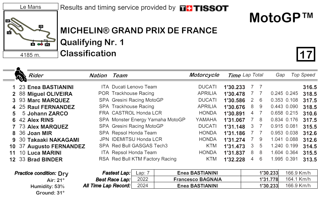 Q1 MotoGP 2024 Le Mans