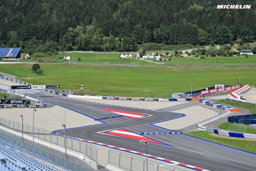 Teatro del GP d’Austria 2023 è il consueto Red Bull Ring. Già A1-Ring e prima ancora Österreichring, questo tracciato risale al 1969 ed è stato a lungo inattivo finché, negli anni ’90, non ha subito un importante e costoso ammodernamento che ne ha permesso la riapertura. Ad oggi misura 4.348 metri, con l’introduzione nel 2022 di una chicane lungo il secondo rettilineo appositamente studiata per le moto, e vanta 11 curve di cui solo 3 a sinistra. Il disegno di questa pista stressa particolarmente la zona centrale degli penumatici, oltre a chiamare poco in causa le spalle sinistre, pertanto Michelin offrirà ai piloti della MotoGP degli pneumatici specifici, che potranno essere riproposti tra qualche mese in tracciati simili, come Buriram e Mandalika, per fronteggiare problemi simili.