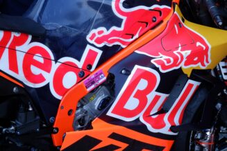 Sul forcellone di questa RC16 speciale del test team KTM sono presenti anche due deflettori, che servono a pulire i flussi d’aria e pure in questo caso la Factory austriaca ha seguito quella italiana, di Noale. Con questa moto Pedrosa ha chiuso col 6° tempo le FP1, risultando il miglior pilota KTM.
