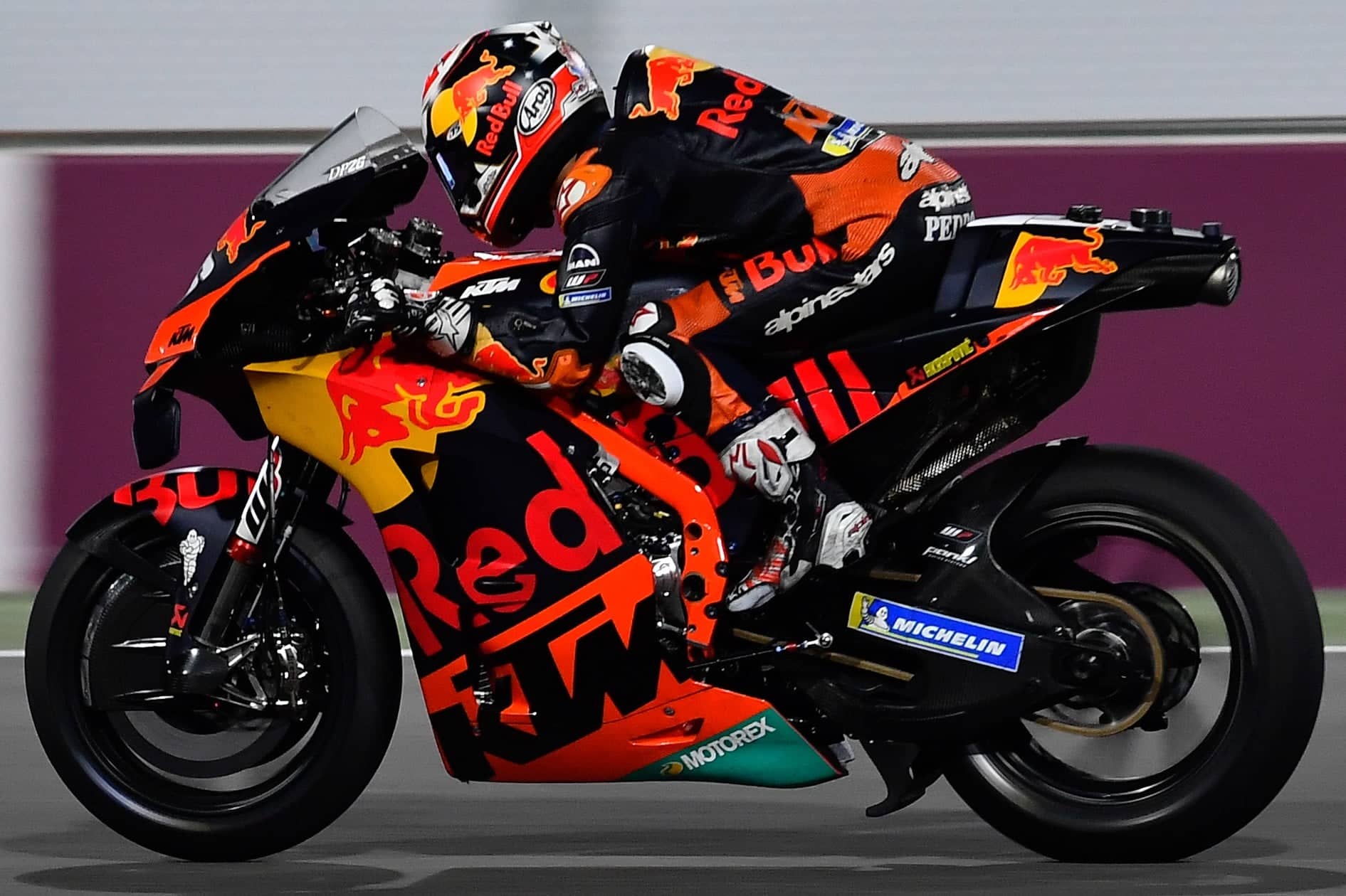 RC16 2021, D. Pedrosa. Si possono notare il nuovo telaio, il nuovo forcellone, e le novità aerodinamiche su codino e cupolino.
