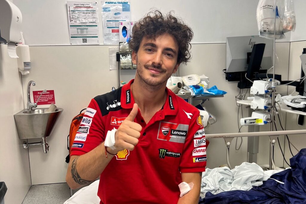 Solo contusioni per Bagnaia dopo il brutto incidente occorsogli a Barcellona, a Misano dovrebbe esserci a differenza del compagno che ha riportato fratture a mano e piede sinistri.