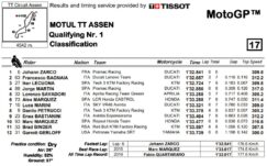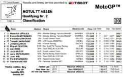 Il primo dei bocciati in Q1 è stato un sorprendente Iker Lecuona, autore del terzo tempo a sette centesimi da Bagnaia. Lo spagnolo del team Tech3 domani scatterà dalla quinta fila in compagnia del rookie Jorge Martin con la seconda Ducati Pramac e di Lorenzo Savadori, che in sella alla RS-GP del team Gresini sta trovando un gran feeling sulla pista di Assen. Sesta fila per i fratelli d’arte Alex Marquez e Luca Marini, con loro anche Petrucci a cui è stato cancellato un tempo da quinta fila per aver ecceduto i limiti della pista.