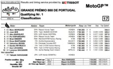 In queste qualifiche è mancato Jorge Martin, vittima di un violento incidente nelle terze libere. Il rookie spagnolo era stato dichiarato unfit e portato in ospedale per accertamenti, i quali hanno scongiurato danni cervicali e spinali ma evidenziato fratture alla mano ed alla caviglia destre. Jorge dovrà essere operato e per il momento si trova in osservazione presso l’ospedale di Faro.