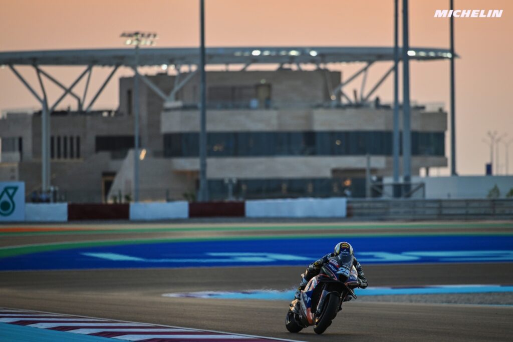 Lo spagnolo del team RNF Aprilia chiude alla grande la prima giornata di prove della MotoGP a Losail, sfiorando il record assoluto nonostante una pista ancora molto sporca. 2° Di Giannantonio. Inizio positivo per Aprilia, con 3 piloti in Top5.