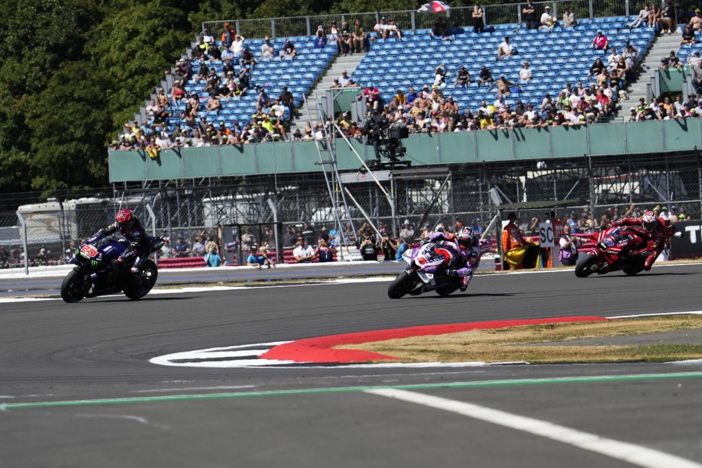 L’esito del GP di Gran Bretagna non era quello che Fabio Quartararo e Yamaha si aspettavano. Il #20 era tra i favoriti dopo le varie simulazioni svolte fra venerdì e sabato, ma oggi in gara è stata una vera débâcle. Partito benissimo e subito all’inseguimento del connazionale Zarco, la gara del Campione MotoGP in carica è cambiata radicalmente una volta scontato il long lap penalty comminatogli per l’incidente con Aleix Espargaro in Olanda. Da quel momento Fabio non è più stato della partita, facendo anche fatica a difendere la posizione. Il Diablo è transitato in ottava posizione sotto la bandiera a scacchi, a 3″8 da trionfatore Francesco Bagnaia e per un soffio davanti al più diretto degli inseguitori, l’acciaccato Aleix Espargaro.