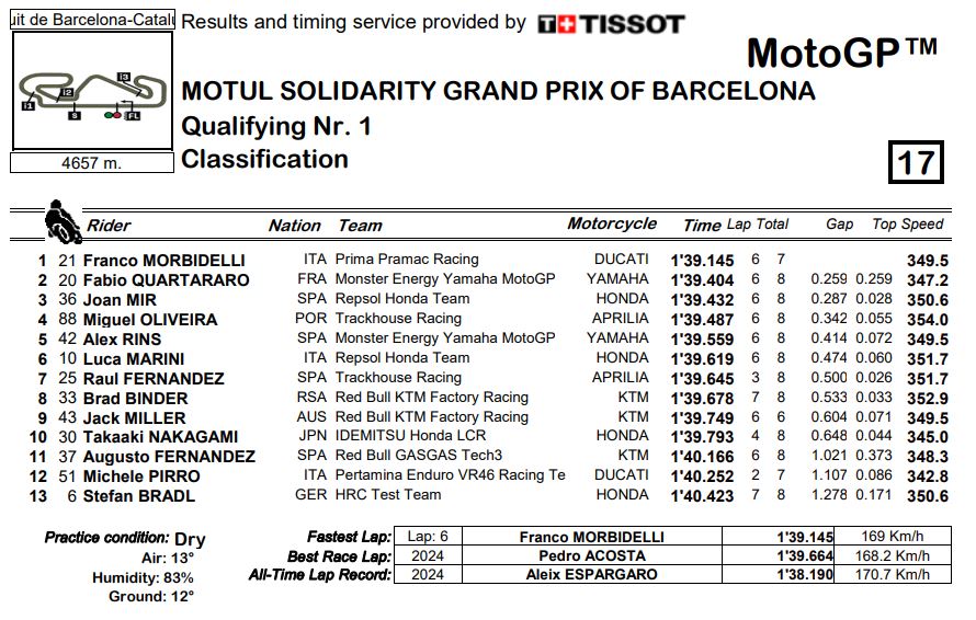 Classifica q1 motogp barcellona solidarity 2024