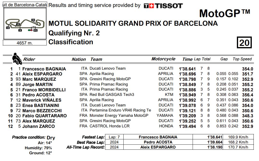 Classifica qualifiche motogp barcellona solidarity 2024