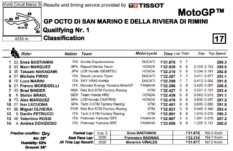 Per il secondo e ultimo run il #93 ha cercato proprio il traino il #63, ma per tenerne il passo è caduto alla curva del Tramonto, chiudendo il proprio turno con qualche minuti d’anticipo. Alcuni secondi dopo è caduto anche Aleix Espargaro, sempre per provare a seguire un pecco in stato di grazia, che domani partirà dalla terza fila tra marc Marquez ed Alex Rins. Quarta fila per Maverick Vinales, Joan Mir ed Enea Bastianini. Il pilota del team Esponsorama è approdato in Q2 col miglior tempo della Q1, un ottimo 1’31”8 che però non è riuscito a replicare: gli avrebbe garantito la seconda fila.