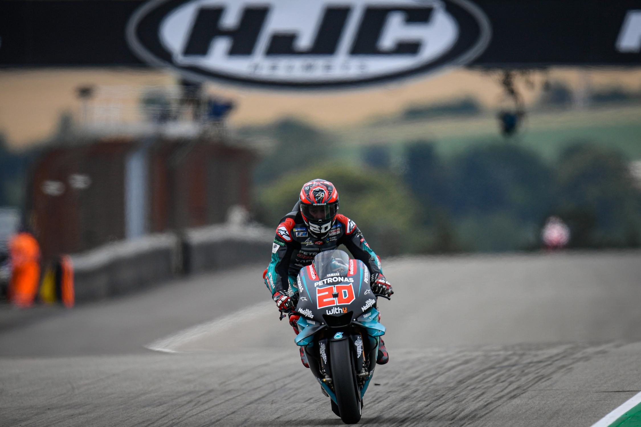 Cambiano i tracciati e le necessità, ma Fabio Quartararo si conferma splendente in questa fase della stagione. Il nizzardo ha concluso davanti a tutti il primo turno di libere al Sachsenring, chiudendo il turno con un passaggio in 1’21”390 grazie ad un treno di gomme Soft nuovo. Un vero e proprio time attack quello del francese, breve ed intenso, al contrario di Marquez. Marc ad inizio sessione ha sparato sette giri filati, sul passo del 21”5 con doppia Medium, che hanno messo in imbarazzo gli altri piloti, più lenti di un secondo. In seguito ha lavorato sull’anteriore della moto, montandoci una Hard e mantenendo la Medium al posteriore di inizio turno, senza migliorare i propri riferimenti. Da segnalare che in queste FP1 Marc ha utilizzato il telaio con rinforzi al carbonio.