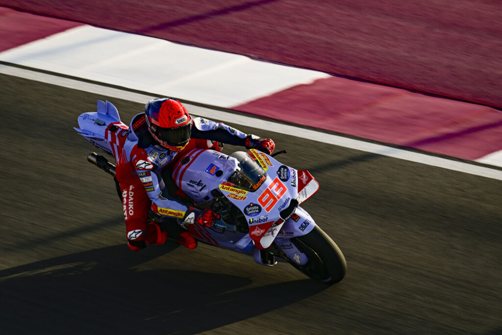 Con il tempo di 1’51″335 Marc Marquez chiude in quarta posizione il secondo giorno di test ufficiali MotoGP sulla pista di Lusail in Qatar: È il primo vero guizzo del #93 nella parte alta della classifica, a poco meno di quattro decimi dal crono record di Pecco Bagnaia, in una sessione affrontata con qualche rischio in più che ha portato anche alla sua prima caduta con la Ducati del Team Gresini: “Prima dell’inizio della stagione ero calmo, sapevo che passo dopo passo saremmo migliorati; in alcuni momenti siamo stati lontani dall’essere competitivi, ma avevamo la necessità di capire a fondo tutti i singoli passaggi per comprendere appieno questa Ducati, che per me è del tutto nuova. Oggi era la giornata giusta per correre dei rischi ed è quello che ho fatto: nel giro veloce siamo migliorati e abbiamo fatto progressi anche sul passo gara. È arrivata anche la mia prima caduta con la Ducati, cosa normale perché oggi mi sono preso dei rischi in più; complessivamente sono soddisfatto, anche se continuano ad esserci cinque o sei piloti più veloci di noi, in particolare Bagnaia, Bastianini e Martin“.