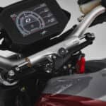 Grande l’impatto offerto dal nuovo cruscotto TFT 5.5”, completissimo e capace di dialogare con l’MV Ride App che consente di personalizzare la moto in ogni suo aspetto direttamente dallo Smartphone, oltre che offrire le funzioni più classiche come registrazione e condivisione degli itinerari. Grazie alla funzione mirroring è poi possibile utilizzare il cruscotto come navigatore con indicazioni corner by corner. Inoltre le versioni RR e RR SCS vantano un faro anteriore faro full LED con funzione cornering grazie alla piattaforma inerziale, illuminando l’interno della curva quando la moto è in piega, soluzione che contribuisce ad aumentare la sicurezza attiva. A proteggere la strumentazione e deviare i flussi di aria dal busto del pilota un piccolo flyscreen dedicato, che sfoggia un profilo modificato per incrementarne l’efficacia.