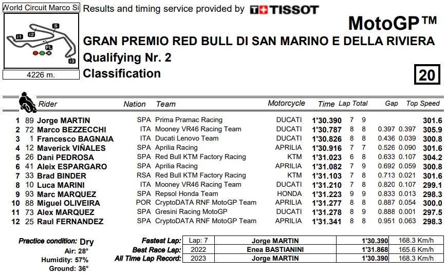 MotoGP Classifica Q2 GP Misano 2023