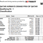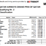 Decimo Maverick Vinales, che nonostante quella del Qatar sia la sua pista preferita chiude a quattro decimi dal compagno e mezzo secondo da Martin. A chiudere la classifica della Q2 del Gp del Qatar, accaparrandosi gli ultimi posti della quarta fila, sono Jack Miller e Raul Fernandez, autori rispettivamente del secondo e primo tempo in Q1. Nella prima sessione di qualifica Zarco ha segnato il terzo miglior tempo e solo 11 millesimi gli hanno impedito di raggiungere la Q2 al primo GP della sua seconda avventura in MotoGP con Honda e LCR. Il francese scatterà nella MotoGP Sprint di oggi e nella gara principale di domani dalla 13^ casella, aprendo la quinta fila dove gli faranno compagni Oliveira e Bezzecchi.
