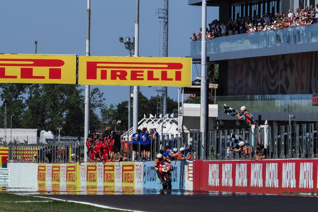 Pirelli è riuscita a fare bella figura nella tappa di casa del Mondiale Superbike, un risultato a cui ci teneva particolarmente essendo pure Title Sponsor dell’evento. Per l’occasione, viste anche le caratteristiche della pista romagnola, Pirelli aveva deciso di portare ben due opzioni di sviluppo posteriori e una anteriore come anticipatovi nell’articolo dedicato. Se ve lo siete persi e volete approfondire, potete raggiungerlo attraverso il bottone qui sotto.