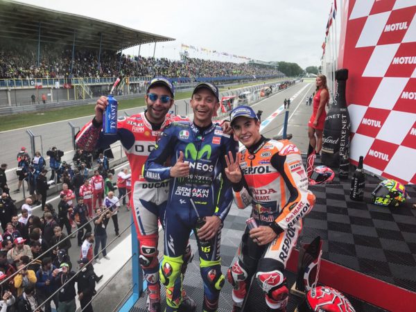 Una gara di quelle da ricordare, di quelle che ti tolgono il respiro e ti mandano il cuore oltre i 140 bpm. Resa quasi epica dalle goccioline che hanno iniziato a bagnare la pista ad 8 giri dal termine. A vincere Valentino Rossi, che fa una gara quasi perfetta davanti a Danilo Petrucci, ostacolato però da Rins non accortosi di essere un doppiato, all’ultimo giro. Gioisce Dovizioso che nonostante una bella rimonta, complice l’asfalto reso viscido, arriva solo 5° ma portandosi in testa al campionato grazie alla caduta di Vinales. Marquez chiude il podio, ammaestrando la furiosa rimonta di Crutchlow. Deludono Pedrosa, 13°, e Lorenzo, solo 15°.