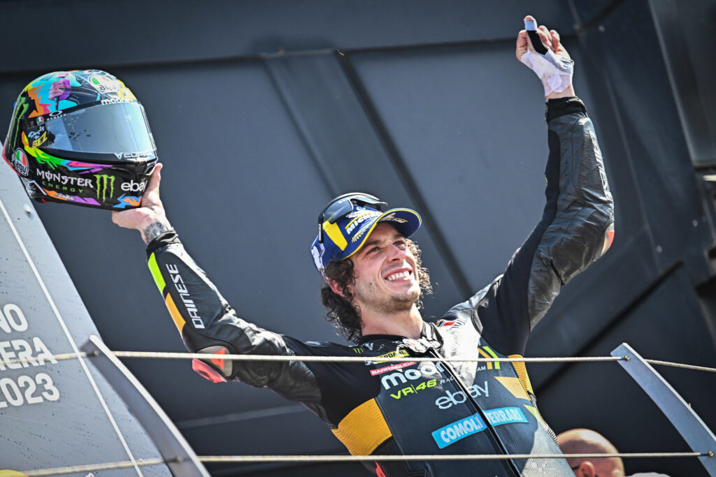 Si è presentato a Misano con una mano fasciata e un casco fighissimo, Marco Bezzecchi. Nemmeno lui probabilmente si aspettava il podio nelle sue condizioni e, invece, si è riuscito a godere tutto l’affetto di casa sua.