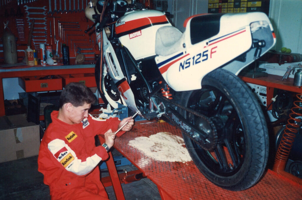 LC: Bella domanda! Ogni tanto ci penso, forse avrei dedicato più tempo all’allenamento, invece passavo molto tempo a cercare gli sponsor per far quadrare i conti. Devo dire che la ricerca e la gestione degli sponsor mi ha assorbito tante energie. Delle annate dal 1991 al 1994, quando ancora non avevo il team, quello che cercherei di cambiare è l’approccio all’allenamento, molto più intenso e maniacale. All’epoca, però, per varie ragioni non ne vedevo la necessità perché la 125 non era così tanto fisica e pensavo dovesse fare tutto la moto. Invece nel tempo mi sono reso conto che l’allenamento fisico e soprattutto psicologico mi avrebbero aiutato: ecco, forse rifarei un po’ più attenzione a questo aspetto qui.