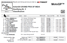 Marco Bezzecchi apre le danze al Buddh International Circuit diventano il primo poleman di un Gran Premio d’India. Il pilota del VR46 Racing Team ha segnato un tempo di 1’43.947 (che ovviamente è anche record della pista, non essendoci precedenti) anticipando di soli 43 millesimi la Ducati Pramac di Jorge Martin. A chiudere la prima fila è Pecco Bagnaia, che segna un distacco di 2 decimi.