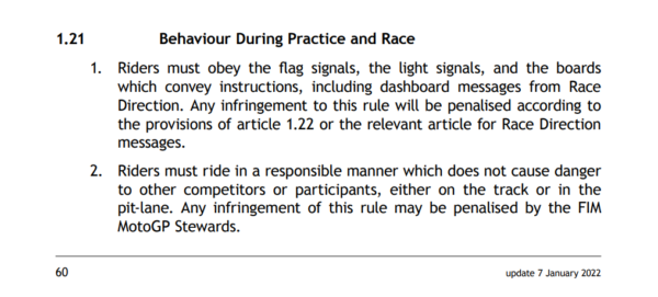 Due adulti contro un ragazzino classe 2004, potremmo pure chiudere qua. Non è minimamente giustificabile neppure il concetto di “difesa” della scia di Sasaki agli avversari. Indecente e basta, e difatti Max Biaggi, che mette fondi e faccia nel team Sterilgarda Husqvarna, si è immediatamente scusato pubblicamente, a nome suo e del team. La squadra inoltre, tramite un comunicato, oltre a scusarsi ha dichiarato che punirà i colpevoli. Che dalla organizzazione sono già stati colpiti da 2000€ di ammenda a testa e dalla squalifica per due gare, Australia e Malesia. Saranno presenti nei prossimi due GP in Giappone e Thailandia, a causa di richiesta visti e limitazioni di viaggio. Punizione minima, anzi forse pure meno. Sarebbe interessante capire se i due sconsiderati abbiano agito in autonomia o in accordo col team, improbabile vista l’azione assurda atta a difendere la scia di Sasaki. Mentre è curioso leggere il tweet del Team ufficiale KTM, Tech3, che praticamente si autoaccusa di aver calcolato l’uscita di Fernandez per entrare nel “gruppo buono” della Q2. Pure qui, velo pietoso.