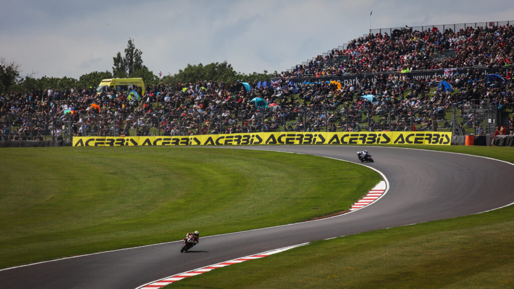 Parlando della location di questo weekend, Donington è un posto magico per la Superbike, è proprio qui che il Campionato ha visto la luce nel 1988. Immerso nella splendida campagna del Leicestershire, il circuito si snoda attraverso il paesaggio su 4,023 km e 12 curve, 7 a destra e 5 a sinistra. Gli allunghi brevi e i continui cambi di pendenza rendono questa pista un piccolo capolavoro immerso nel verde, ma la disposizione delle frenate la rende altamente impegnativa per l’impianto frenante impedendone il corretto raffreddamento. Il record della pista appartiene ad Alvaro Bautista, che nel 2023 è riuscito a segnare in Superpole Race un 1’25.896, più veloce anche della pole position segnata il giorno prima da Jonathan Rea in 1’26.041!