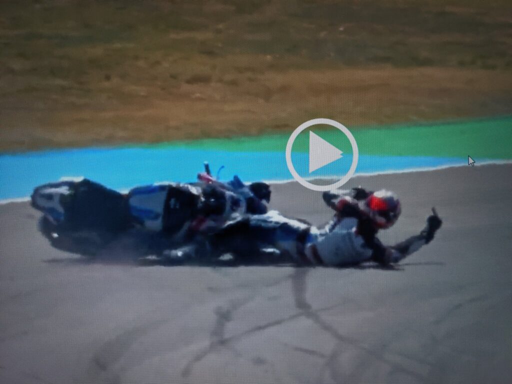 All’inizio di Gara-2, infatti, Bassani ha mandato nella ghiaia di curva 12 Loris Baz, che a sua volta lo ha mandato nel luogo più affollato del globo terracqueo con un’indicazione tanto precisa quanto quasi romanticamente coreografica, come si può notare dalla sgranata foto qui di seguito.