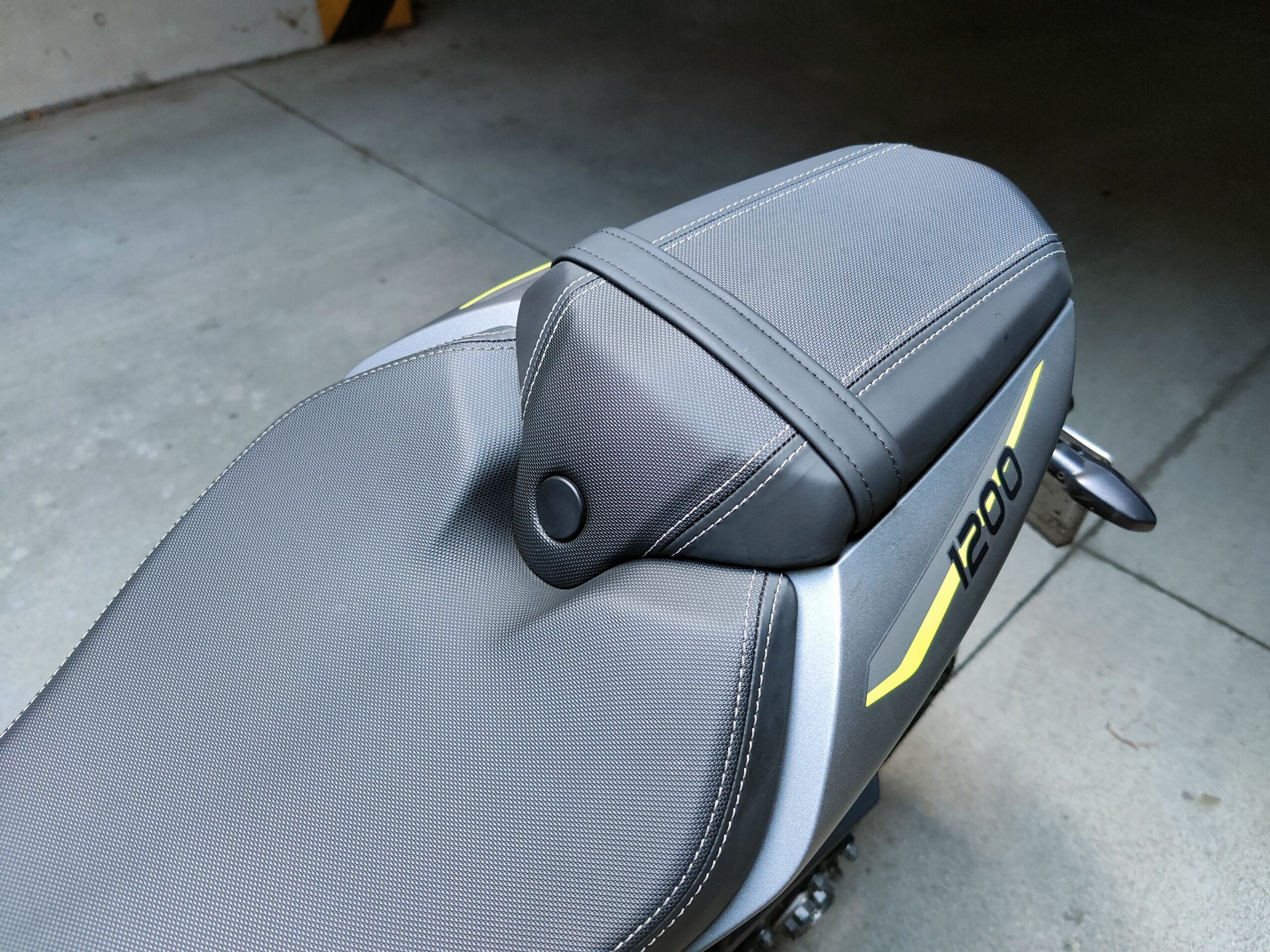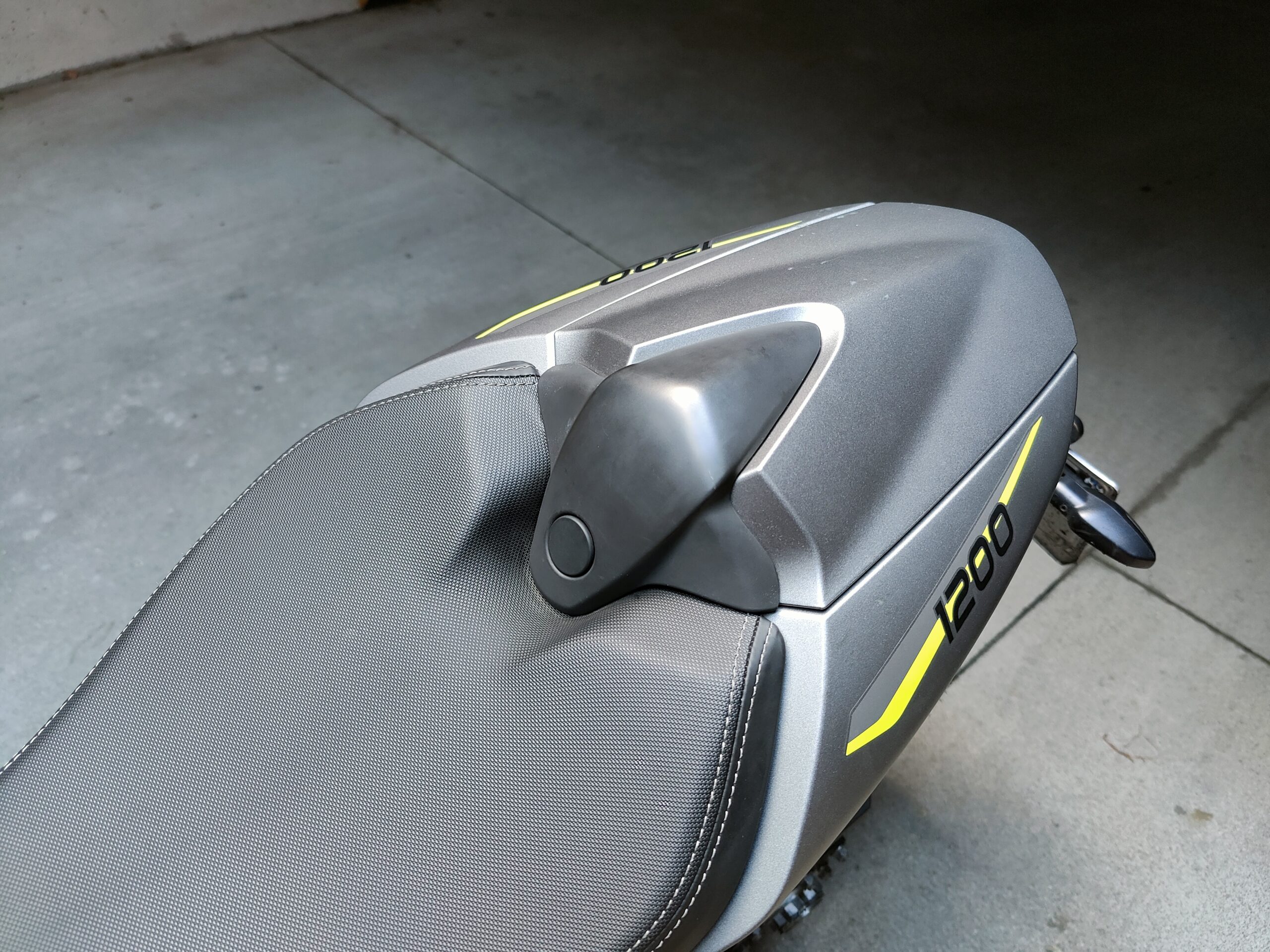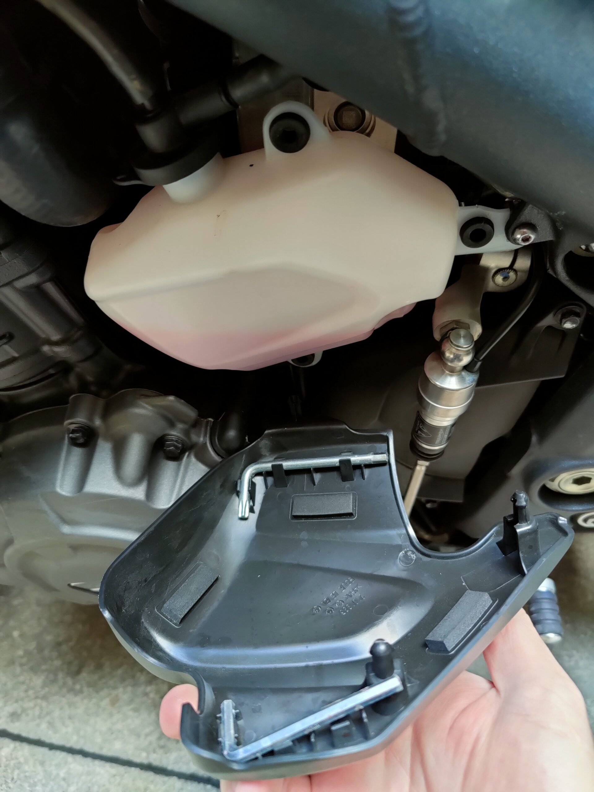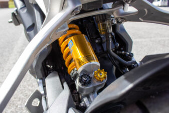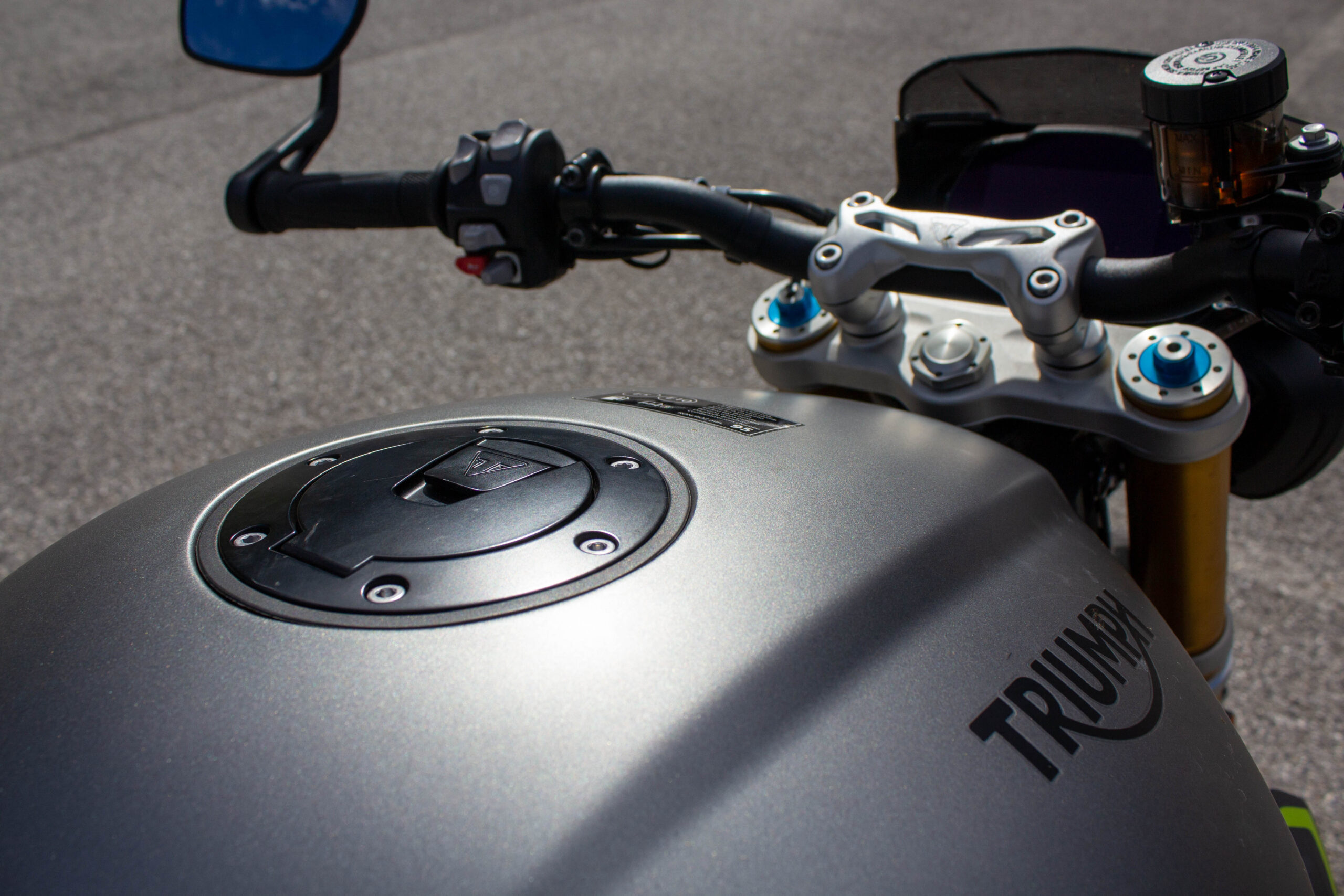 Richiama il precedente modello, nella parte superiore, il telaio della Speed 1200. Del 17% più leggero, cambia significativamente nella zona inferiore, dov’è ben più corto e permette al motore (più compatto di prima nonostante cubatura e potenza) di essere collocato più in basso e in posizione più avanzata, dove viene spostato pure il baricentro. Si allunga invece il forcellone monobraccio, ma l’interasse rimane lo stesso della 2018-2020, 1445 mm. Leggeri i nuovi cerchi in lega di alluminio, che accolgono gomme Metzeler Racetec RR K3 in misure 120/70 e 190/55. Tutte Öhlins completamente regolabili le sospensioni, non elettroniche ma di altissimo livello: NIX30 all’anteriore con steli da 43 mm, TTX36 su specifica Triumph al posteriore, montato senza leveraggi. Sono Brembo Stylema, monoblocco radiali, le pinze freno anteriori, comandate dalla MCS regolabile nell’interasse (19-20-21), che mordono dischi da 320 mm. Sorpresa al posteriore, dove il disco da 220 mm è frenato da una pinza a due pistoncini. Un piccolo miracolo la efficacissima frenata e modularità del disco dietro, in un segmento di mercato che sotto questo punto di vista spesso delude. Probabilmente la scelta di Triumph è stata indirizzata anche dalla frenata combinata, visto che ora l’ABS può andare a frenare la ruota posteriore, cosa che accade sovente quando si frena decisi col davanti. Avrebbe potuto dare una sensazione strana, invece la centralina Continental MIB-EVO aiuta a far “sedere” un po’ la moto nelle staccate, modulando dinamicamente il suo intervento in base alla necessità e alla inclinazione della moto. Funzioni che non sapevi di volere e che ora desideri. Molto comoda la sella, appoggiata sul bel telaietto in alluminio. Inesistente il vano sottosella, non per modo di dire, letteralmente: cover monoposto e sellino passeggero, entrambi forniti di serie, vanno sganciati svitando una vite Torx con l’apposita chiave, fornita insieme a una brugola. Ma se non posso aprire la sella dove trovo gli attrezzi? Nella cover della vaschetta liquido refrigerante, che viene montata a incastro. Curioso. Sotto la sella principale, smontabile con un’altra vite, si trova la batteria al Litio. Altro dettaglio tecnico utile ad alleggerire la nuova Speed Triple.