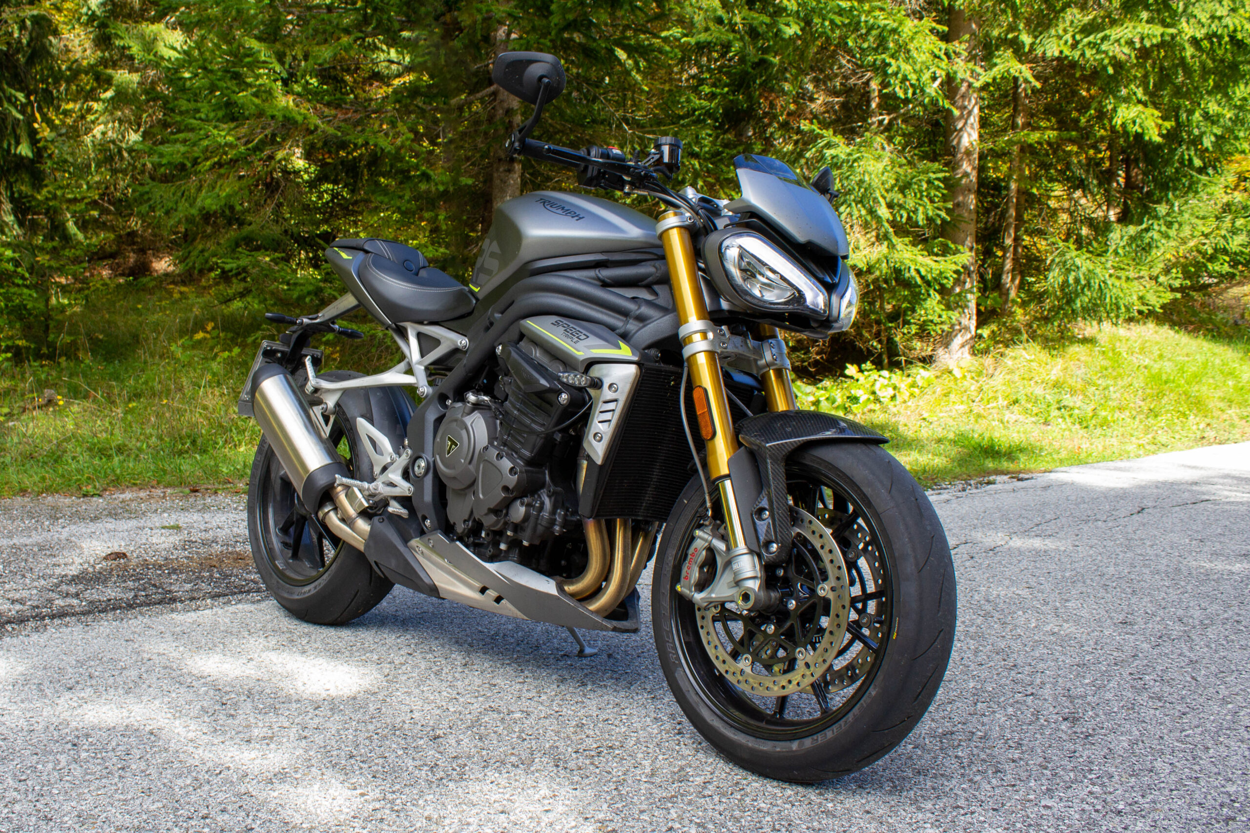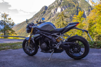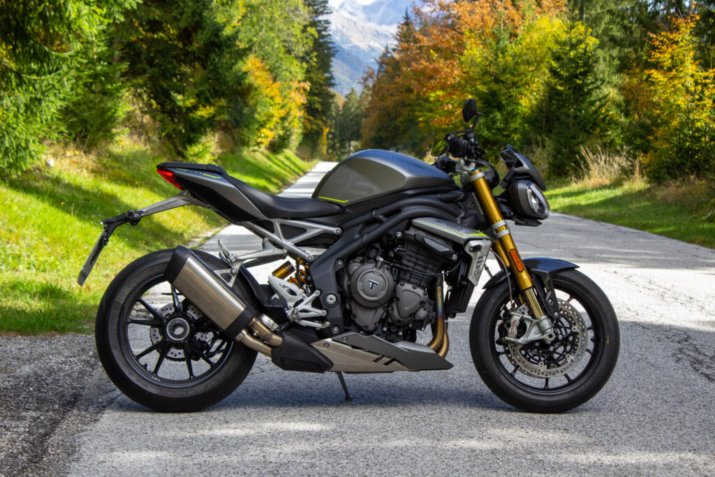 Un mezzo veramente eccezionale questa Triumph, che mi ha sorpreso per tanti motivi diversi, dalle doti dinamiche alla cura degli assemblaggi. Ammirevole inoltre la quantità di funzionalità di serie, mentre con i giusti optional (36 in totale disponibili sul configuratore sul sito) ci si può portare a casa una moto addirittura votata al turismo leggero. Anche i tagliandi ogni 16.000 km suggeriscono che si possa percorrere parecchi chilometri in un anno. E se invece siete del partito opposto sì, ci potete decisamente andare in pista, garantito. La precisione con cui riesce ad andare forte indica che sono le strade ad essere troppo poco per la Speed, e non il contrario. Soprattutto in mappa Track, che è meglio utilizzare con attenzione, preferibilmente in circuito. Ma non è una SBK nuda creata per non farsene nulla, rimane comunque una eccezionale moto stradale, pensata per la strada e quindi ben più adeguata di altri prodotti con meno senso. Non per questo è un giocattolo, le prestazioni ci sono, fanno paura e meritano attenzione e testa. È ridicolmente facile a basse velocità, questo sì, ma non la consiglierei comunque a un neopatentato. 180 cavalli si fanno sentire appena si ruota il polso destro, bisogna sempre sapere bene cosa si sta facendo. La qualità si paga, e la Speed Triple non fa eccezione, soprattutto perché nata con la precisa idea di non scendere a compromessi e di essere completissima anche senza optional. 18.595€ il prezzo franco concessionario, purtroppo la crisi dell’ultimo anno ha portato un migliaio di euro di aumento dal prezzo di lancio del 2021. Resta comunque, considerando il panorama attuale, una delle più equilibrate e interessanti del segmento premium, considerando funzionalità, prestazioni, estetica e qualità/prezzo. Una gran bella moto, per fare tutto quello che ti pare alla velocità che vuoi tu.