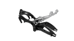Il telaio resta un doppia trave in lega d’alluminio come il forcellone, entrambi derivati della GSX-R1000. Questa conformazione abbina leggerezza e rigidezza per offrire un’eccellente manovrabilità e una solida tenuta di strada a qualsiasi andatura. Le sospensioni sono completamente regolabili nel precarico molla e nell’idraulica, con una messa a punto in base studiata per i nuovi pneumatici Dunlop Sportmax Roadsport 2 sviluppati ad hoc per la GSX-S1000. Spicca forcella KYB con finitura ora a steli rovesciati da 43 mm all’anteriore.
