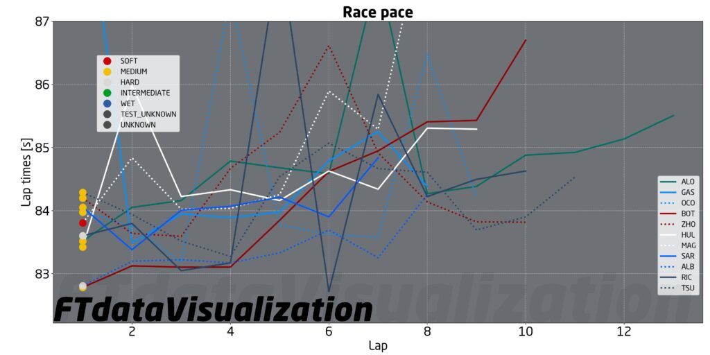 Il resto del gruppo ha invece visto un’ottima AlphaTauri anche sul passo gara, come avevamo già visto nell’analisi di Austin. Da notare anche un long run veramente buono di Albon, addirittura più veloce di quello delle Ferrari. Il pilota anglo-thailandese si è però lamentato durante qualifiche di non provare più le stesse buone sensazioni alla guarda della sua Williams, motivo per cui questa strepitosa simulazione lascia un po’ il tempo che trova. Tutti gli altri tempi, tra long run mancanti (Stroll), tempi che salgono e scendono e scrosci di pioggia, risultano molto difficili da interpretare, motivo per cui concluderemo questa analisi con un democristiano ci sarà lotta a centro gruppo.