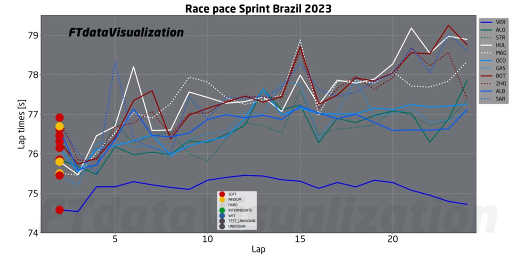 Nella Sprint Race di sabato abbiamo potuto apprezzare il livello dei team in condizioni di gara. I valori in pista dovrebbero rispecchiare quelli visti nel corso della Sprint, ma con alcune considerazioni da fare sul tipo di gomma utilizzata e la strategia scelta durante lo stint. Vediamo che passo gara aspettarci per il GP del Brasile di F1.