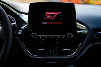 Solo chi tenta di avvicinarsi a lei inizia a notare che, come diceva qualcuno, oltre le gambe c’è di più. I sedili Recaro, proposti di serie ed eccezionali nel loro essere contemporaneamente comodi e contenitivi, evocano sportività, ed i dettagli in alluminio satinato che spuntano qua e là non fanno altro che confermare l’impressione di chi, andando oltre le semplici apparenze, inizia ad avvicinarsi alla Fiesta ST. Il sistema multimediale SYNC 3 – che trovo tuttora uno dei più piacevoli da utilizzare e che è ovviamente munito di Android Auto ed Apple CarPlay – campeggia al centro della plancia senza curarsi di orientare lo schermo da 8″ verso chi guida, mentre il volante compatto e… sodo sulla cui razza centrale spunta il badge “ST” è un poco velato invito a prendere in mano la situazione per iniziare a conoscersi meglio. I materiali utilizzati sono generalmente piacevoli al tatto, e l’intero abitacolo trasmette concretezza, praticità: ciò che è superfluo sulla Fiesta ST non trova posto. Piuttosto, meglio sublimare e affinare quello che può tornare utile davvero, decidendo per esempio di far firmare da Bang & Olufsen un impianto stereo degno di essere usato persino su una macchina a benzina dotata di un sound accattivante.
