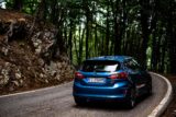La ST vi seduce senza possibilità di appello alla prima curva, stretta o larga che sia. Incurante della velocità d’ingresso, pressoché totalmente menefreghista nei confronti del suo essere una trazione anteriore, con il minimo sforzo vi trascina in un vortice di emozioni che non vi aspettavate di poter provare a bordo di un’auto di questo tipo. Il fil rouge che unisce volante e pneumatici anteriori è più intenso che mai, e un avantreno che trasmette alla perfezione tutto ciò che incontra sul proprio cammino vi rende improvvisamente padroni totali dell’auto, della strada e persino dell’ambiente che vi circonda. La Fiesta ST vi prende per mano mentre vi irretisce curva dopo curva. L’inserimento è fulmineo, la velocità di percorrenza è impensabile, l’assetto è tremendamente vicino a quello che può essere considerato lo stato dell’arte per questa categoria. E’ la brava ragazza, quella che da definizione dovrebbe trovarsi nella porta accanto salvo poi essere chissà dove, che si materializza all’improvviso e si trasforma nella donna dei vostri sogni: emozionante, pulsante, viva.