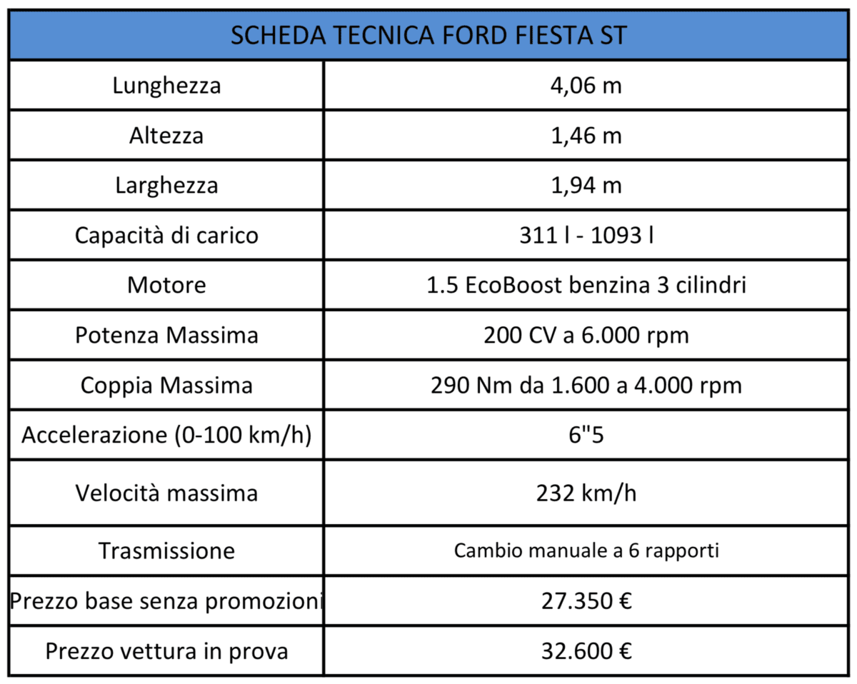 Nell’arco delle due settimane di prova è stato tremendamente difficile, per me, trovare alla Fiesta ST un difetto degno di questo nome. Velocissima, divertente, coinvolgente, la segmento B dell’Ovale Blu è tutto ciò che una compatta sportiva dovrebbe essere: parafrasando Richard Hammond, è un’auto che ti rende felice non solo per cosa fa ma anche – e soprattutto – per come ti fa sentire mentre lo fa. La Fiesta ST porta con sé l’esaltazione giovanile dei primi appuntamenti, quando non vedevi l’ora di uscire perché dovevi incontrarti con la ragazzina a cui facevi il filo da un secolo: non sapevi come sarebbe andata, cosa avresti fatto e se saresti riuscito effettivamente a conquistarla, ma eri felicissimo di poterlo fare a prescindere dal risultato. Con lei è letteralmente la stessa cosa. Poco importa che tu prima di salire a bordo sappia di dover fare 10, 15 o 100 km in città, su un passo di montagna o in autostrada: per essere davvero felice ti basterà sapere che tutto ciò lo farai con lei, una delle migliori Hot Hatch che la storia dell’Automotive abbia mai visto. Proposta in promozione a partire da 23.450 € e in grado di farvi percorrere addirittura 13,8 km/l.
