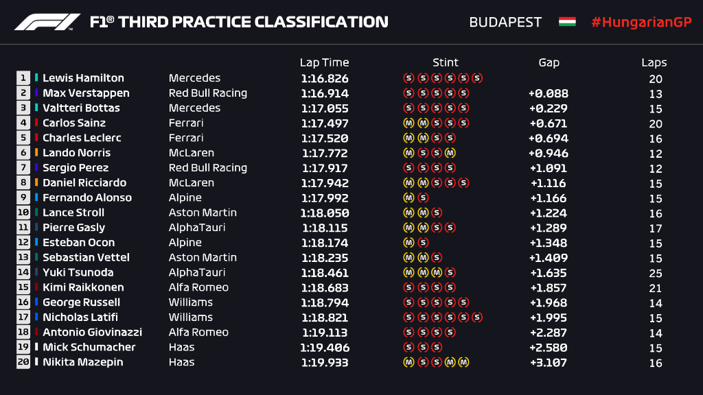 Hamilton batte Verstappen per 88 millesimi nelle FP3 ungheresi. Sainz davanti a Leclerc