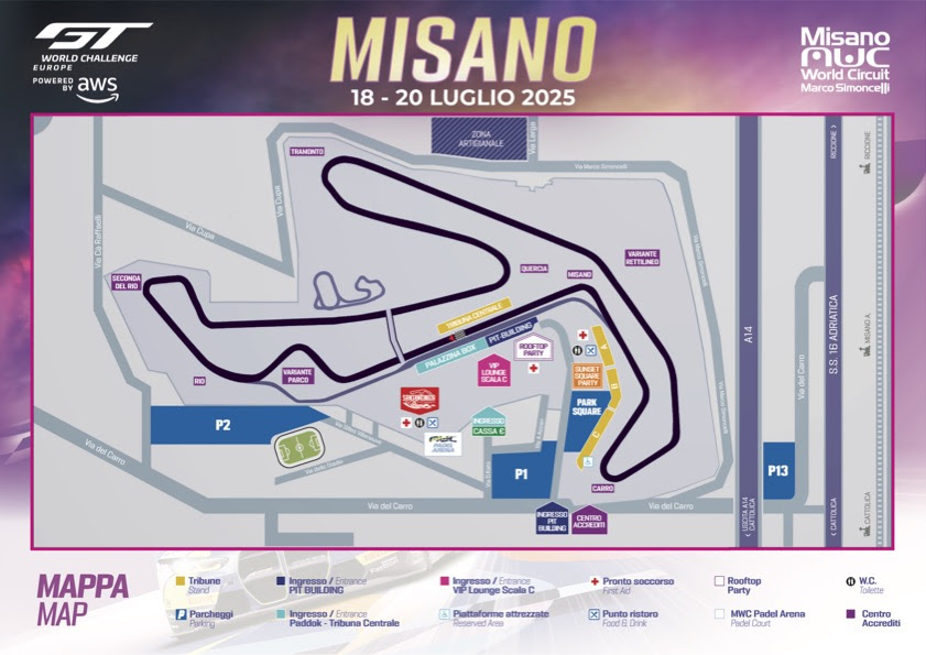 La giornata del sabato, in particolare, propone un ricchissimo programma con un’appendice serale da non perdere. Dalle 18:00 sarà possibile accedere al circuito al prezzo ridotto di 10€ (o addirittura di 1€ per i bambini sotto i 12 anni) e assistere a Gara-1 del GTWC 2025 a Misano, che prenderà il via alle 20:15 rendendo l’atmosfera sulla Riviera ancora più suggestiva.