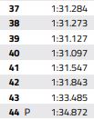 I tempi di Zhou tra il 37mo giro e il 44mo in cui ha pittato