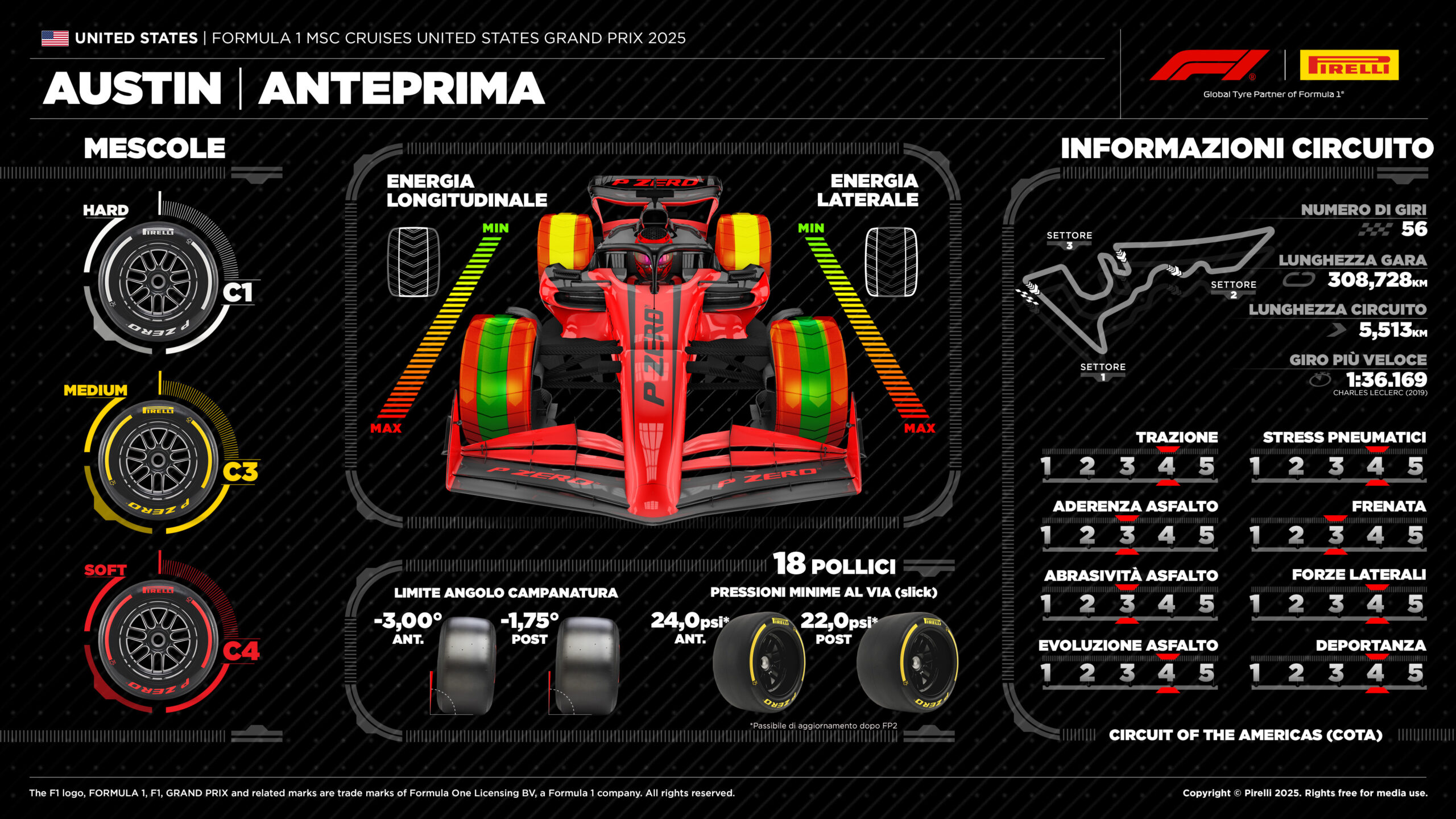 Le gomme scelte da Pirelli per il GP degli Stati Uniti 2025