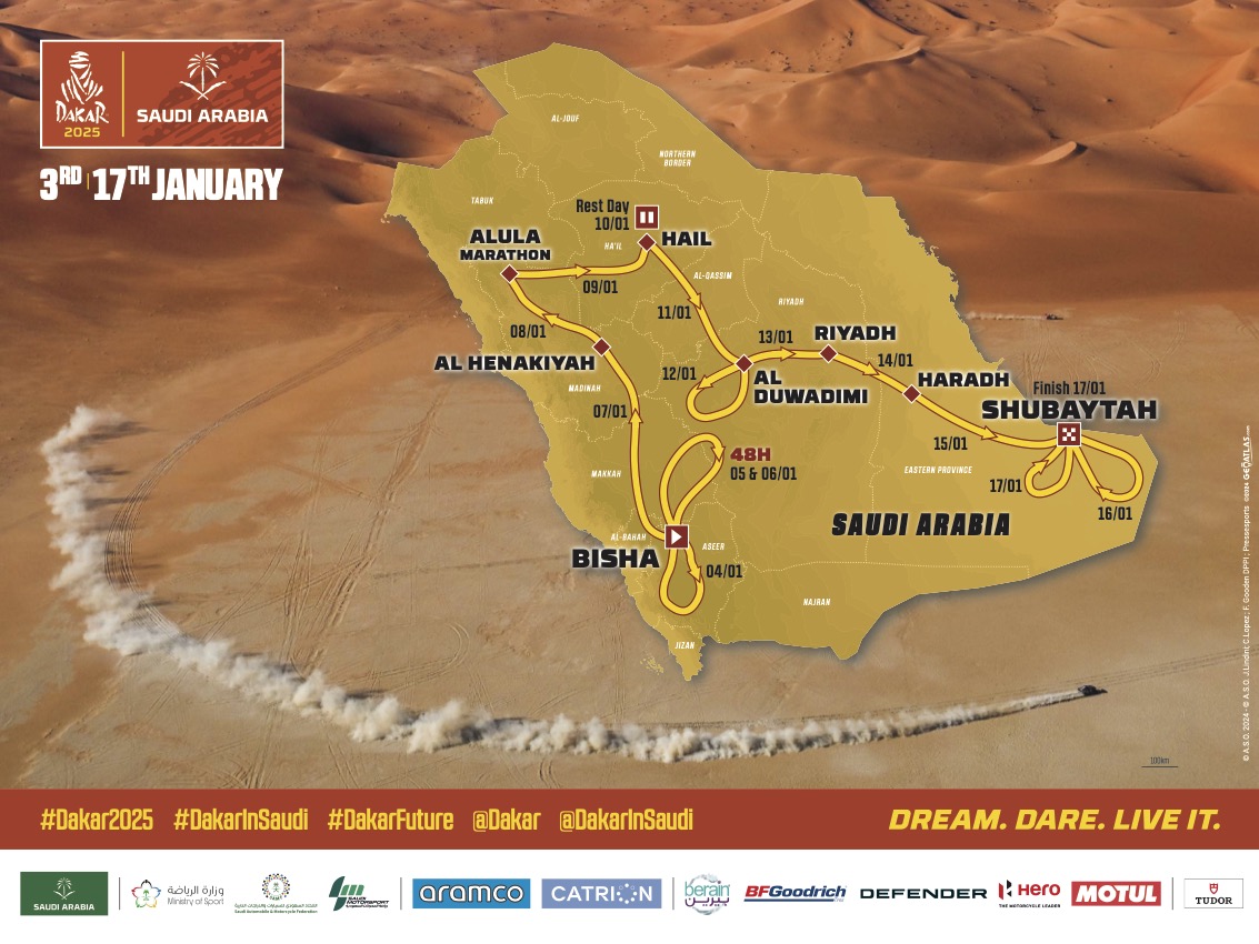 “Nella stesura del percorso della Dakar 2025 siamo andati alla ricerca di terreni e format di gara che permettessero di rievocare l’esperienza vissuta dai pionieri della categoria negli anni ’80” – ha dichiarato David Castera, Direttore della Dakar – “Crediamo di essere riusciti a sfruttare appieno il potenziale offerto dall’Arabia Saudita, caratterizzata com’è da sabbie, sentieri veloci, sezioni tecniche ed enormi dune, per porre l’accento sulle prestazioni”.