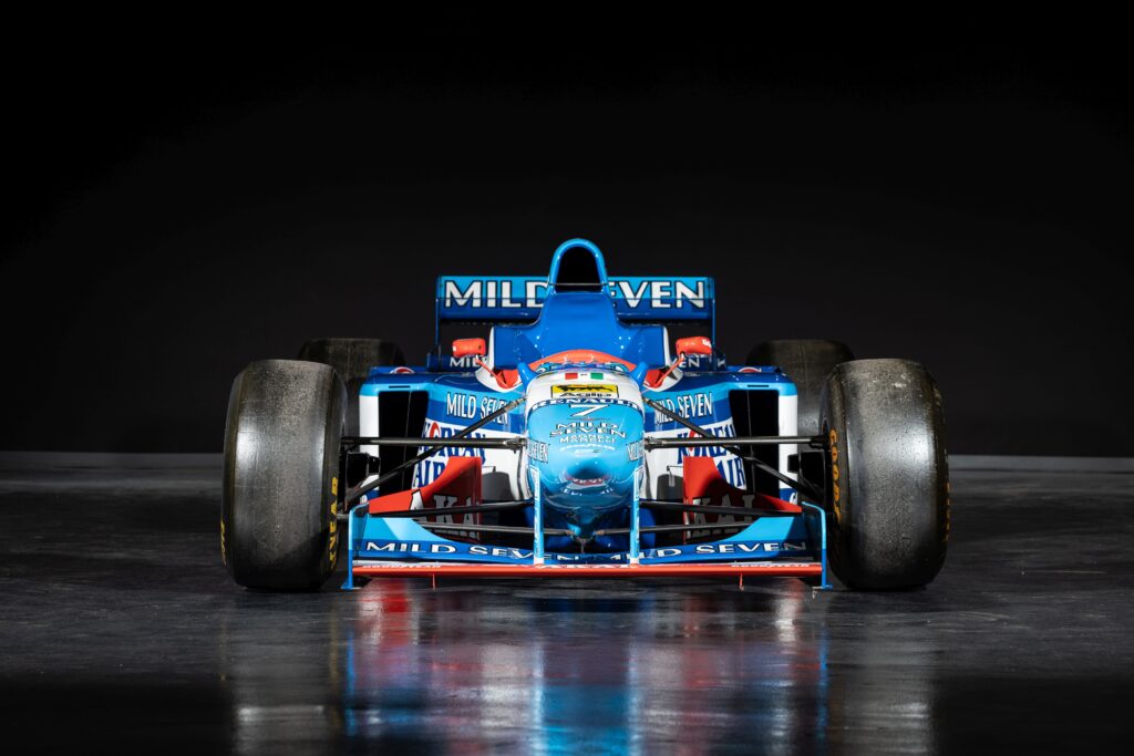 Chiudiamo la nostra rassegna di consigli per gli acquisti con una vettura sempre motorizzata Renault e proveniente dal 1997, ovvero una Benetton-Renault B197. Ultima monoposto Benetton disegnata da Rory Byrne prima del passaggio in Ferrari, ha calcato le piste del mondiale 1997 guidata da Gerhard Berger e Jean Alesi, due nomi che non lasciano mai indifferente il pubblico italiano. Dotata di chassis numero 5, la B197 all’asta ha corso prevalentemente nelle mani del francese Alesi con cui ha ottenuto 3 podi tra i quali un secondo posto al Gran Premio del Canada, dietro ad un certo Michael Schumacher su Ferrari. A Jerez de la Frontera invece la B197 all’asta ha visto dietro al volante Berger, divenendo così l’ultima vettura pilotata dall’austriaco in F1. Il volante riporta le iniziali di Jean Alesi, mentre il sedile smontato prima dell’asta riporta quelle di Gerhard Berger. Purtroppo viene venduta “orfana” del V10 Renault RS9, ma ciò non toglie che sia decisamente bellissima. All’asta col lotto 131, viene valutata tra 200.000 e 300.000€.