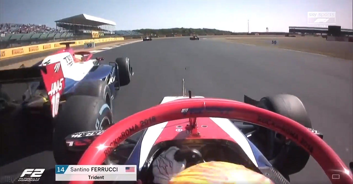 Sprint Race inglese: in curva 4 Maini tocca Ferrucci spingendolo sull’erba. “L’incidente verrà investigato dopo la gara” riporta la grafica a schermo. Ed effettivamente, aspettare la fine della corsa per risolvere la questione è stato esattamente ciò che ha fatto Santino Ferrucci. L’americano infatti nel giro di rientro cerca e trova volontariamente il contatto con il compagno di scuderia, rompendo tra l’altro ala anteriore e braccetto della sospensione.