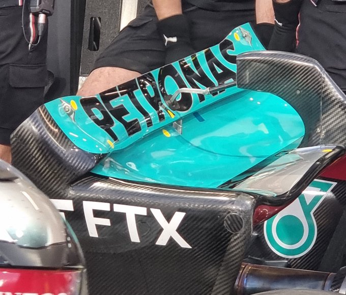 Un’ala posteriore a carico molto basso dalla forma anche abbastanza atipica per Mercedes. Jeddah, nonostante sia un cittadino richiede velocità di punte elevate ed una buona efficienza.