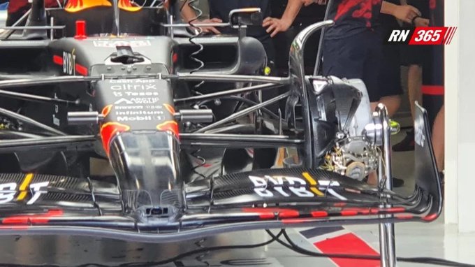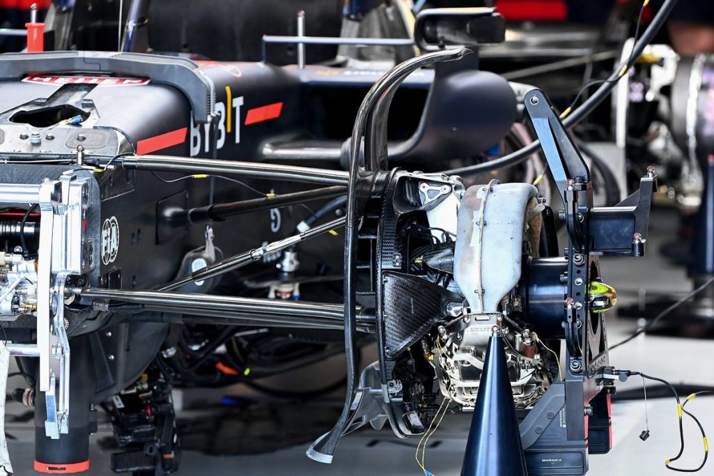 Da questa immagine si può vedere il raffreddamento dei freni della RB18: molto simile al convogliatore realizzato in titanio da McLaren, ma composto in due gusci.